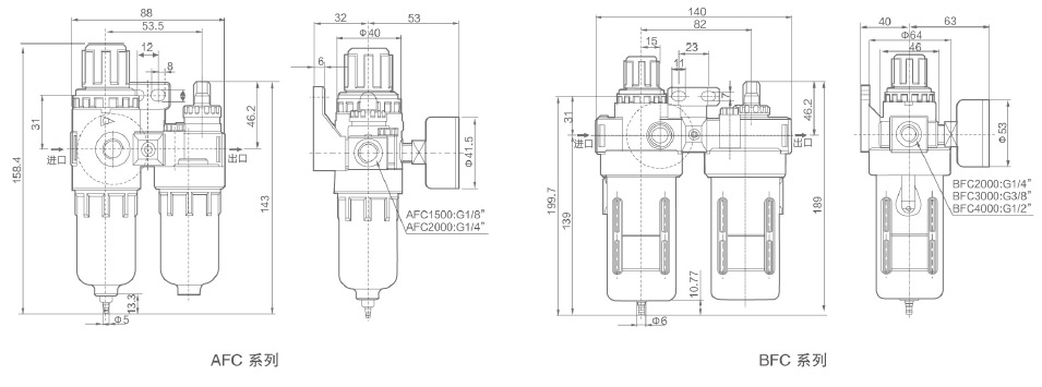 | 構(gòu)成元件 | 過濾調(diào)壓器 | AFR1500 | AFR2000 | BFR2000 | BFR3000 | BFR4000 |