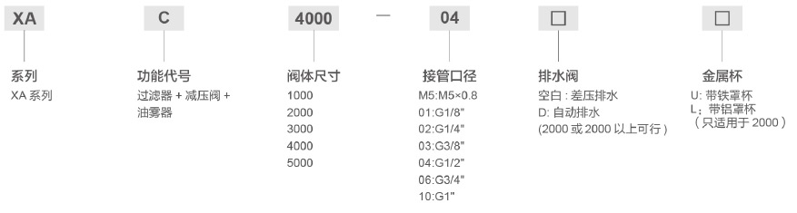 | 油霧器 | XAL1000-M5 | XAL2000-01 | XAL2000-02 | XAL3000-02 | XAL3000-03 | XAL4000-03 | XAL4000-04 | XAL4000-06 | XAL5000-06 | XAL5000-10 | |